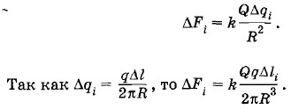 Задача 5Тонкое проволочное кольцо радиусом Д несет электрический заряд q. В центре кольца расположен одноименный с q заряд Q, причем Q » q. Определите силу, растягивающую кольцо. Решение. 1-й способ. Так как Q » q, то взаимодействием между отдельными элементами кольца можно пренебречь. Выделим малый элемент кольца длиной Δl = RΔα (рис. 1.15, о). Со стороны заряда Q на него действует сила