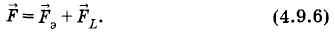 Часто силой Лоренца называют полную силу (4.9.6). Тогда силу, определяемую формулой (4.9.3), называют магнитной частью силы Лоренца.