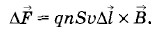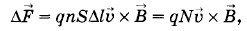 где N = nSΔl — число заряженных частиц в рассматриваемом участке провода. На каждую заряженную частицу со стороны магнитного поля действует сила Лоренца