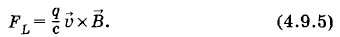 Модуль силы Лоренца, согласно определению векторного произведения, равен: FL = qυB sin α, (4.9.4) где υ — угол между векторами Сила Лоретта перпендикулярна плоскости, содержащей векторы В системе единиц Гаусса сила Лоренца равна: