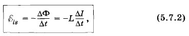 Глава 5. Электромагнитная индукция ИндуктивностьИндуктивностьМодуль В магнитной индукции, создаваемой током в любом замкнутом контуре, пропорционален силе тока. Так как магнитный поток Ф пропорционален В, то Ф ~ В ~ I. Можно, следовательно, утверждать, что Ф = LI, (5.7.1) где L — коэффициент пропорциональности между током в проводящем контуре и созданным им магнитным потоком, пронизывающим этот контур. Величину L называют индуктивностью контура или его коэффициентом самоиндукции. Используя закон электромагнитной индукции и выражение (5.7.1), получим равенство: