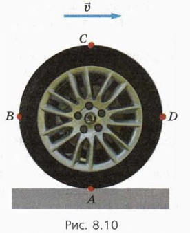 Пусть автомобиль едет со скоростью (рис. 8.10), причём его колёса катятся без проскальзывания.
