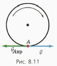 Заметим, что скорость Авр вращения нижней точки А направлена противоположно скорости автомобиля (рис. 8.11).