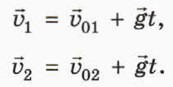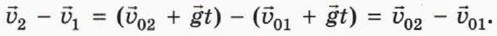 Действительно, пусть начальные скорости двух тел равны 01 и 02. Тогда их скорости в момент времени t выражаются в векторном виде формулами