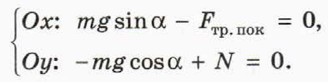 Условие покоя тела на наклонной плоскости