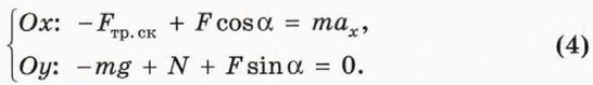 К бруску приложена сила , направленная вверх под углом а к горизонту (рис. 20.2). Начальная скорость бруска равна 0.