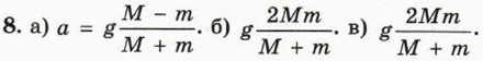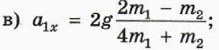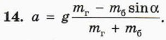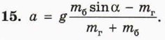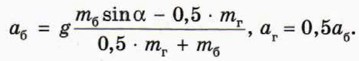 16. 25 cm. 17. a) 8 H. 6) 6 м/с2, в) 0,5 кг. 18. a) 2,5 м/с2. 6) 20 H. Указание. Вес перегрузка проще всего найти из второго закона Ньютона для груза, на котором лежит перегрузок, в) 2,7 кг. 19. 1,6 Н. 20. Если 0,5 • mг > m6sin α, то