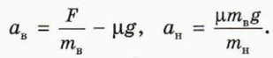 § 24. Движение системы тел. Учёт трения между телами системы Тела в начальном состоянии покоятся друг относительно другаНа гладком столе лежат один на другом два бруска (рис. 24.5). Массу нижнего бруска обозначим mН, а массу верхнего — mB. Коэффициент трения между брусками μ.
