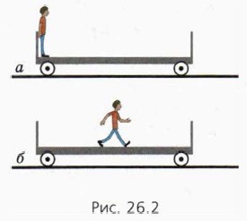 § 26. Условия применения закона сохранения импульса Внешние силы уравновешивают друг друга или ими можно пренебречьКак мы уже говорили, в точности замкнутых систем тел не существует. Поэтому возникает вопрос: в каких случаях можно применять закон сохранения импульса к незамкнутым системам тел? Рассмотрим эти случаи. С этим случаем мы уже познакомились в предыдущем параграфе на примере двух взаимодействующих тележек. В качестве второго примера вспомним первоклассника и десятиклассника, соревнующихся в перетягивании каната, стоя на скейтбордах (рис. 26.1). При этом внешние силы также уравновешивают друг друга, а силой трения можно пренебречь. Поэтому сумма импульсов соперников сохраняется.