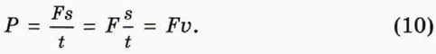Часто мощность удобно выражать не через работу и время, а через силу и скорость. Рассмотрим случай, когда сила направлена вдоль перемещения. Тогда работа силы А = Fs. Подставляя это выражение в формулу (9) для мощности, получаем: