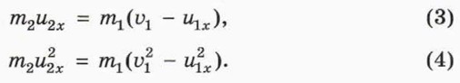 u2x = υ1 + u1x. (5) П о д с к а з к а. Если столкновение произошло, то обе части уравнения (3) отличны от нуля. Поэтому можно разделить левую и правую части уравнения (4) соответственно на левую и правую части уравнения (3). Уравнения (3) и (5) представляют собой систему двух линейных уравнений. Используя эту систему, легко выполнить следующее задание.