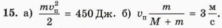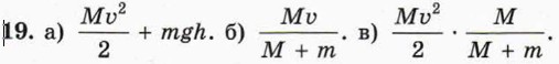 16. а) Через 12 с. У к а з а н и е. Когда второй шар окажется на высоте разрыва, его скорость будет равна скорости первого шара сразу после разрыва, б) 60 м/с. в) 240 м. г) 4680 м. д) 306 м/с. 17. а) 2 м/с. б) 400 г. 18. а) 0,5 кг. б) 25 Дж. в) 7 Дж. г) 18 Дж.
