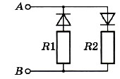 Укажите условия прохождения тока через диоды и резисторы в обоих случаях и определите сопротивление резисторов в этой цепи.