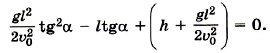 Задача 3. Футболист, находясь от ворот на расстоянии l, ударяет по мячу, и мяч летит с начальной скоростью υ0 и пролетает мимо, едва коснувшись верхней планки ворот. Высота ворот h. Определите, под каким углом начал лететь мяч, после того как футболист ударил по нему. Р е ш е н и е. Выбрав систему координат так, как показано на рисунке 1.56, и начало координат в точке удара по мячу, отметим, что координаты мяча в момент касания верхней планки ворот будут х = l, у = h.