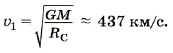 Из этого уравнения определим первую космическую скорость, т. е. минимальную скорость, с которой надо запустить тело с поверхности Солнца, чтобы оно стало его спутником: