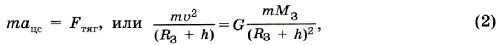 где h — высота спутника над поверхностью Земли. Для определения скорости необходимо знать высоту h. Спутник движется по круговой орбите, при этом сила тяготения является центростремительной силой. Согласно второму закону Ньютона для спутника запишем: