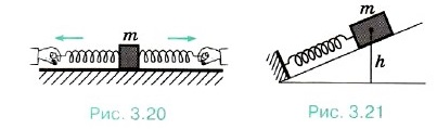 Выразив ускорение из первого уравнения системы и подставив его во второе, получим Так как согласно закону Гука Fупр = kx, то Тогда удлинение пружины Задачи для самостоятельного решения 1. К динамометру привязан груз массой 2 кг. Динамометр с грузом опускают с ускорением 3 м/с2. Жёсткость пружины 103 Н/м. Определите модуль растяжения пружины динамометра. 2. К бруску массой 1 кг, находящемуся на гладкой горизонтальной поверхности, прикреплены две пружины (рис. 3.20). Жёсткость правой пружины 2 • 103 Н/м, левой — в 2 раза меньше. Чему равно отношение удлинений пружин в случае, когда брусок неподвижен?