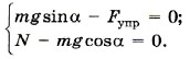 Условие равновесия бруска: m Запишем это условие в проекциях на оси ОХ и OY: Из первого уравнения системы получим Fyпp = mg sinα. При изменении угла наклона изменение силы упругости найдём из выражения ΔFyпp = mg(sinα2 - sinα1) = 5 • 10 • (0,866 - 0,5) (Н) = 18,3 Н.
