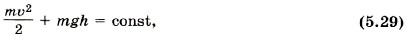Глава 5. Закон сохранения энергии § 45. Закон сохранения энергии в механикеКак изменяются потенциальная, кинетическая и полная механическая энергии тела при его свободном падении вниз? если тело брошено вверх? Обратимся к простой системе тел, состоящей из земного шара и поднятого над поверхностью Земли тела, например камня. Камень падает под действием силы тяжести. Силу сопротивления воздуха учитывать не будем. Изменение кинетической энергии камня равно работе сил тяжести: ΔЕк = Aт (5.23) Изменение потенциальной энергии равно работе силы тяжести, взятой с обратным знаком: ΔЕп = -Ат (5.24) Работа силы тяжести, действующей со стороны камня на земной шар, практически равна нулю. Из-за большой массы земного шара его перемещением и изменением скорости можно пренебречь. Из формул (5.23) и (5.24) следует, что ΔЕк = -ΔЕп. (5.25) Равенство (5.25) означает, что увеличение кинетической энергии системы равно убыли её потенциальной энергии (или наоборот). Отсюда следует, что ΔЕк + ΔЕп = 0, или Δ (Ек + Еп) = 0. (5.26) Изменение суммы кинетической и потенциальной энергий системы равно нулю. Полная механическая энергия Е равна сумме кинетической и потенциальной энергий тел, входящих в систему: Е = Ек + Еп. (5.27) Так как изменение полной энергии системы в рассматриваемом случае согласно уравнению (5.26) равно нулю, то энергия остаётся постоянной: Е = Ек + Еп = const. (5.28)