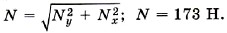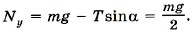 Для нахождения силы реакции шарнира воспользуемся первым условием равновесия: m Запишем это векторное уравнение в проекциях на координатные оси: —Тх + Nx = 0, Ту + Ny - mg = 0, или Nх = Тcosα, Отсюда Nх = 86,5 H; Nхy = 150 H. Модуль силы N равен Угол, который образует сила