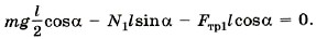 Глава 7. Равновесие абсолютно твёрдых тел § 52. Примеры решения задач по теме «Равновесие твёрдых тел» (окончание)Для записи правила моментов выберем ось вращения, проходящую через точку С, и запишем: