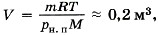 Глава 11. Взаимные превращения жидкостей и газов § 71. Примеры решения задач по теме «Насыщенный пар. Влажность воздуха»При решении задач надо иметь в виду, что давление и плотность насыщенного пара не зависят от его объёма, а зависят только от температуры. Уравнение состояния идеального газа приближённо применимо и для описания насыщенного пара. Но при сжатии или нагревании насыщенного пара его масса не остаётся постоянной. При решении некоторых задач могут понадобиться значения давления насыщенного пара при некоторых температурах. Эти данные нужно брать из таблицы. Задача 1. Закрытый сосуд объёмом V1 = 0,5 м3 содержит воду массой m = 0,5 кг. Сосуд нагрели до температуры t = 147 °С. На сколько следует изменить объём сосуда, чтобы в нём содержался только насыщенный пар? Давление насыщенного пара рн. п при температуре t = 147 °С равно 4,7 • 105 Па. Р е ш е н и е. Насыщенный пар при давлении рн. п занимает объём, равный