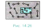 Два вида диэлектриков. Существующие диэлектрики можно разбить на два вида: полярные, состоящие из таких молекул, у которых центры распределения положительных и отрицательных зарядов не совпадают; неполярные, состоящие из атомов или молекул, у которых центры распределения положительных и отрицательных зарядов совпадают. Следовательно, молекулы у этих двух видов диэлектриков разные. К полярным диэлектрикам относятся спирты, вода и другие вещества; к неполярным — инертные газы, кислород, водород, бензол, полиэтилен и др. Поляризация полярных диэлектриковПолярный диэлектрик состоит из молекул, которые можно рассматривать как электрические диполи. Тепловое движение приводит к беспорядочной ориентации диполей (рис. 14.26), поэтому на поверхности диэлектрика, а также и в любом его объёме, содержащем большое число молекул (выделенный прямоугольник на рисунке 14.26), электрический заряд в среднем равен нулю. Напряжённость электрического поля в диэлектрике в среднем также равна нулю.