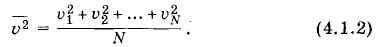 Это простое арифметическое среднее. Далее очевидно, что все N молекул газа находятся в одинаковых макроскопических условиях. Ни одна из них не выделяется в смысле характера своего поведения среди других. Поэтому средний квадрат скорости газовой молекулы можно определить и по-другому. Пусть одновременно измерены скорости Υ1, Υ2, ..., ΥN всех молекул (рис. 4.1, б). Тогда средний квадрат скорости молекулы равен среднему арифметическому квадратов скоростей всех молекул газа в данный момент: