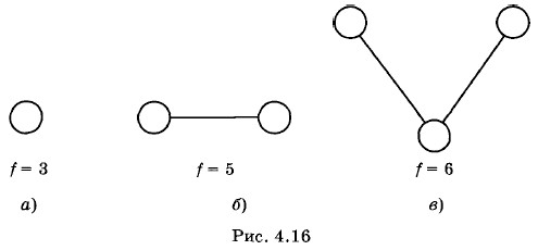 Внутренняя энергия молекулярных газовВнутренняя энергия одноатомного газа (4.8.1)— это по существу средняя кинетическая энергия поступательного движения молекул. В отличие от атомов молекулы, лишенные сферической симметрии, могут еще вращаться. Поэтому наряду с кинетической энергией поступательного движения молекулы обладают и кинетической энергией вращательного движения. В классической молекулярно-кинетической теории атомы и молекулы рассматриваются как очень маленькие абсолютно твердые тела. Любое тело в классической механике характеризуется определенным числом степеней свободы ƒ — числом независимых переменных (координат), однозначно определяющих положение тела в пространстве. Соответственно число независимых движений, которые тело может совершать, также равно ƒ. Атом можно рассматривать как однородный шарик с числом степеней свободы ƒ = 3 (рис. 4.16, а). Атом может совершать только поступательное движение по трем независимым взаимно перпендикулярным направлениям. Двухатомная молекула обладает осевой симметрией (рис. 4.16, б) и имеет пять степеней свободы. Три степени свободы соответствуют ее поступательному движению и две — вращательному вокруг двух осей, перпендикулярных друг другу и оси симметрии (линии, соединяющей центры атомов в молекуле). Многоатомная молекула, подобно твердому телу произвольной формы, характеризуется шестью степенями свободы (рис. 4.16, в); наряду с поступательным движением молекула может совершать вращения вокруг трех взаимно перпендикулярных осей.