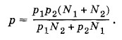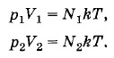 После того как кран будет открыт, давления выравняются и искомое давление согласно той же формуле (4.5.6) определится уравнением p(V1 + V2) = (N1+ N2)kT. Подставляя сюда выражения для объемов из предыдущих формул, получим