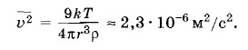 Задача 2В воздухе при t = 27 °С взвешены пылинки сферической формы. Радиус пылинок r = 10-6 м. Плотность вещества пылинок ρ = 1,3 • 103 кг/м3. Определите средний квадрат скорости пылинок. Решение. Пылинки принимают участие в броуновском движении. Средний квадрат скорости пылинки