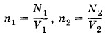 (здесь V1 и V2 — объемы сосудов). Следовательно,