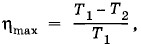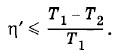 Так как по условию η' > η, то А' > А. Поэтому тепловая машина может привести в действие холодильную машину, да еще останется избыток работы. Эта избыточная работа совершается за счет теплоты, взятой от одного источника. Ведь холодильнику при действии сразу двух машин теплота не передается. Но это противоречит второму закону термодинамики. Если допустить, что η > η', то можно другую машину заставить работать по обратному циклу, а машину Карно — по прямому. Мы опять придем к противоречию со вторым законом термодинамики. Следовательно, две машины, работающие по обратимым циклам, имеют одинаковые КПД: η' = η. Иное дело, если вторая машина работает по необратимому циклу. Если допустить η' > η, то мы опять придем к противоречию со вторым законом термодинамики. Однако допущение η' < η не противоречит второму закону термодинамики, так как необратимая тепловая машина не может работать как холодильная машина. Следовательно, КПД любой тепловой машины η' ≤ η, или