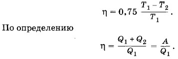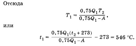 Задача 9Тепловая машина совершает работу А = 2 • 103 Дж при затрате количества теплоты Q1 = 4 • 103 Дж. Известно, что КПД такой машины составляет 0,75 (75%) максимально возможного КПД (ηmах)- Определите температуру нагревателя машины t1, если температура холодильника t2 = 0 °С. Решение. Согласно условию задачи КПД тепловой машины равен