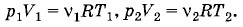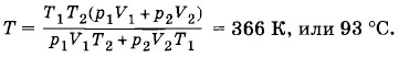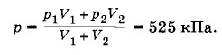 p(V1 + V2) = (ν1 + ν2)RT, используя найденные значения для ν1, ν2 и Т, получим