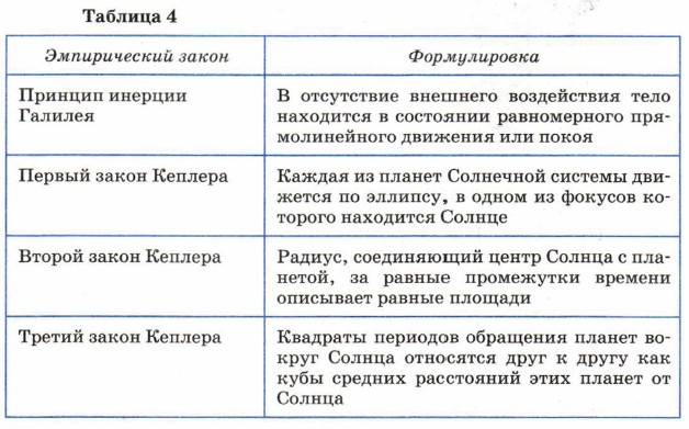 5. Законы, полученные как результат эксперимента (эмпирические законы) (табл. 4).