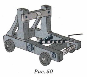 Глава 3. Следствия классической механики § 17. БаллистикаВнутренняя и внешняя баллистика1. В истории есть множество примеров, когда решение проблем повышения обороноспособности государства давало новый импульс развитию науки. Одним из таких примеров может служить появление баллистики (от греч. ballo — бросаю) — науки о движении снарядов. Баллистика зарождалась в те времена, когда каменные ядра выбрасывались на вражеские войска с помощью простых механических катапульт (рис. 50). С появлением пушек баллистика разделилась на два раздела. Внутренняя баллистика изучает движение снаряда (или пули) внутри ствола, а внешняя баллистика рассматривает движение неуправляемых снарядов после их вылета из ствола.