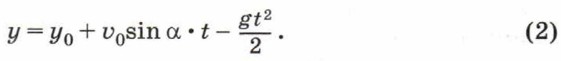 В то же время движение по вертикали будет ускоренным, и уравнение для координаты у имеет вид: