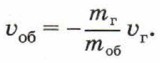 Перед полётом ракета покоится относительно Земли, и поэтому её импульс равен нулю. После вылета из оболочки газ приобретает импульс mгυг, а оболочка — mобυоб. Если не учитывать действие силы тяжести, то оболочку и топливо можно считать замкнутой системой и применить закон сохранения импульса: