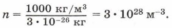 Если плотность воды ρ = 1000 кг/м3, а масса молекулы воды m0 = 3 • 10-26 кг, то концентрация молекул воды равна: