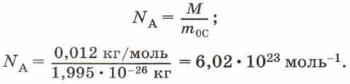 NА = 6,02 • 1023 моль-1. Постоянную Авогадро можно рассчитать, зная, что углероду количеством вещества 1 моль соответствует масса 0,012 кг, а масса одной молекулы углерода m0С = 1,995 • 10-26 кг. Тогда в одном моле углерода содержится число молекул: