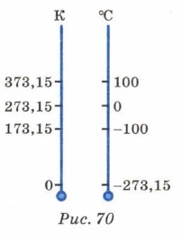 Соотношение между значениями температуры по шкале Цельсия и по термодинамической шкале выражается формулами: Т = t + 273,15; t = Т — 273,15. Часто величиной 0,15 пренебрегают, так как она мала по сравнению с 273, и при решении задач за абсолютный нуль принимают температуру-273 °С.