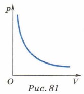 Графиком зависимости давления газа от его объёма при постоянной температуре — изотермой — является гипербола (рис. 81).