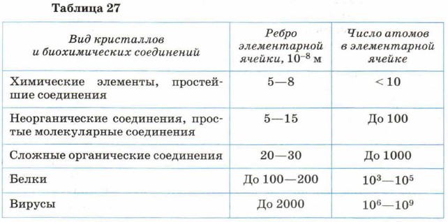 В таблице 27 приведены параметры элементарной ячейки некоторых кристаллов и биохимических соединений.