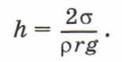 Таким образом, высота подъёма жидкости в капилляре прямо пропорциональна поверхностному натяжению и обратно пропорциональна плотности жидкости и радиусу капилляра.