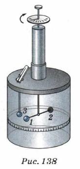 Глава 8. Электростатика § 48. Закон КулонаОпыты Кулона с крутильными весами1. Французский учёный Кулон в 1785 г. установил на опыте закон взаимодействия неподвижных электрических зарядов. Для выявления зависимости силы взаимодействия электрических зарядов от их модуля и расстояния между ними Кулон использовал специальный прибор — крутильные весы (рис. 138).