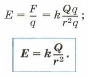 Q и q — модули зарядов, r — расстояние между ними. Подставляя выражение для F в формулу напряжённости поля, получим: