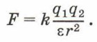 Глава 8. Электростатика § 52. Диэлектрики в электростатическом поле (окончание)Различные диэлектрики поляризуются внешним полем по-разному и имеют разную диэлектрическую проницаемость. Так, диэлектрическая проницаемость дистиллированной воды равна 81, а стекла — от 4 до 7 в зависимости от его сорта. Если заряды находятся не в вакууме, а в какой-то среде, необходимо учитывать, что поляризация среды повлияет на взаимодействие зарядов. Поскольку напряжённость поля в диэлектрике уменьшается в ε раз, то и электрические силы, действующие на заряды, также уменьшаются во столько же раз. Следовательно, закон Кулона для зарядов, взаимодействующих в диэлектрике, имеет следующий вид: