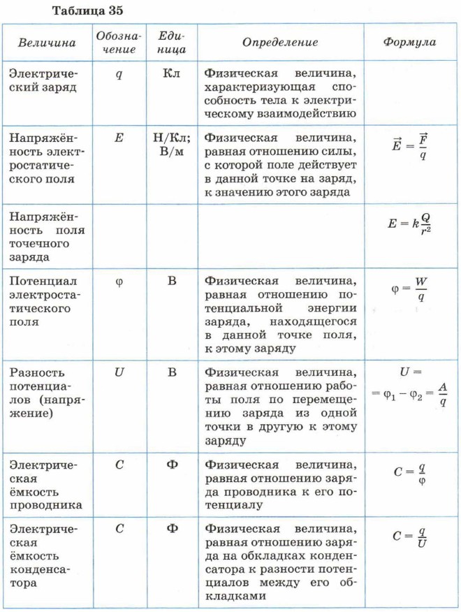 Глава 8. Электростатика Основное в главе 8: Электростатика1. Физическая модель — точечный электрический заряд. 2. Основные величины (табл. 35).