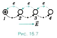 В дырке имеется избыточный положительный заряд по сравнению с остальными, не разорванными связями (см. рис. 16.6).